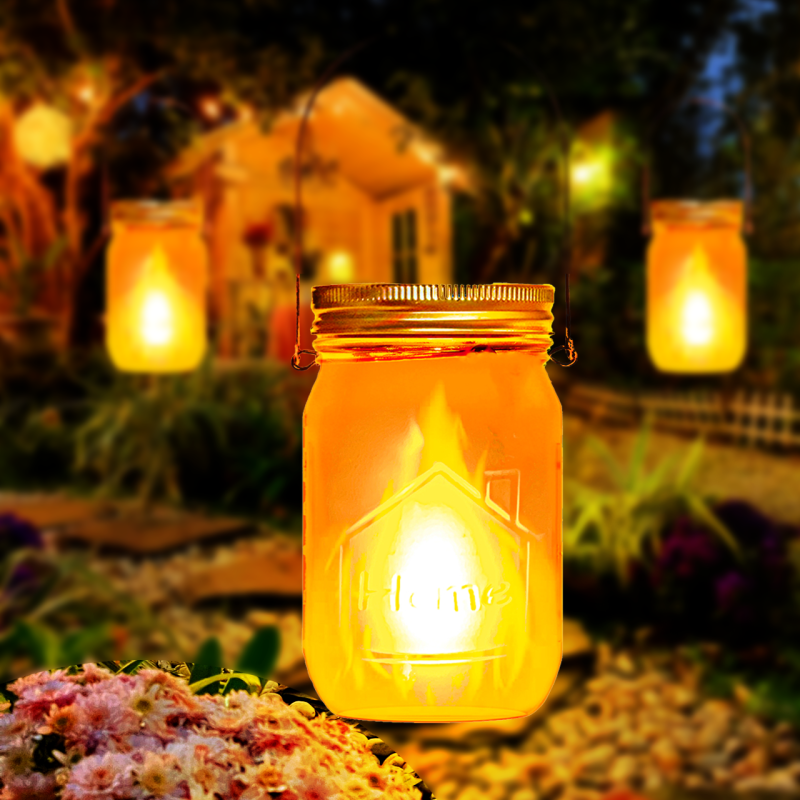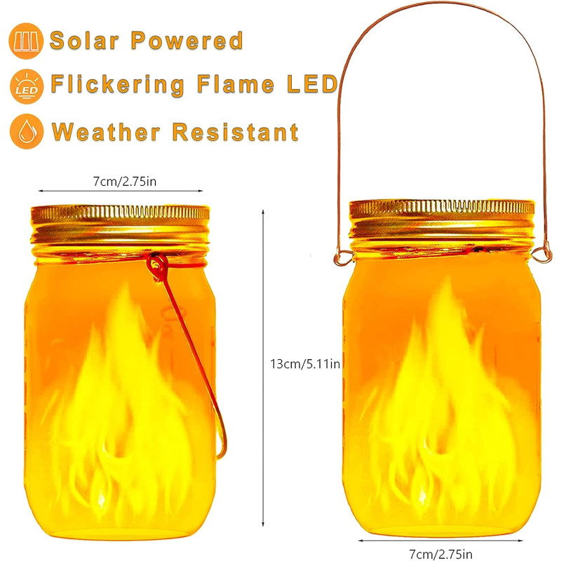 - Outdoor Solar Garden Lights:8 pack solar mason jar lantern lights (jars with lids and handles are included),create an active atmosphere.can be hanging anywhere which can be created a beautiful scenery.