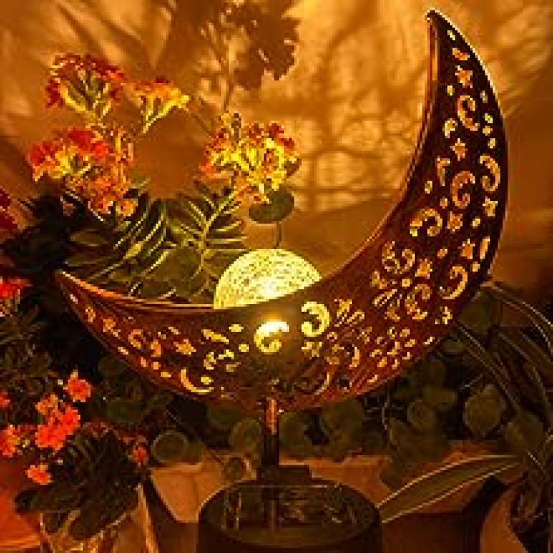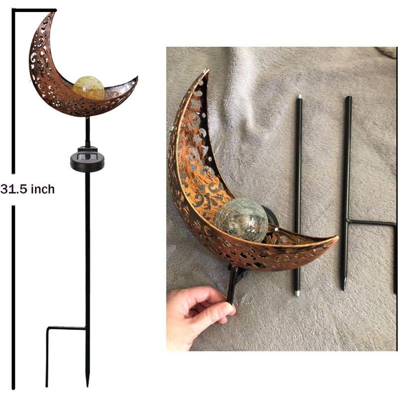 - Solar Moon Shape Lights:Crackle glass globe design , copper color moon shap with warm white led lighting ,give you a special feeling,make home more beautiful.