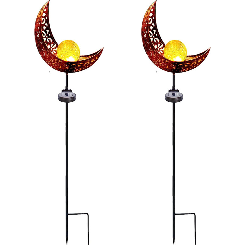 - Easy to Install:The solar moon light are connecting 3 stakes together.The size of it is 8" x 4" x 31.5" inch ,easy to press it into the soil.It is a good choice for your garden, yard,pathway ,patio decor lights.